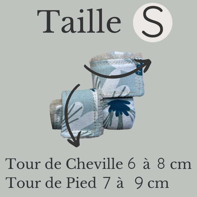 Les chaussettes pour pododermatites lapins sont cousues à la main avec un tissu extérieur en coton, un tissu intérieur en éponge duveteux, d'une feutrine apposée en face palmaire qui ajoute un amorti au talon et enfin de scratch pour la fixation.