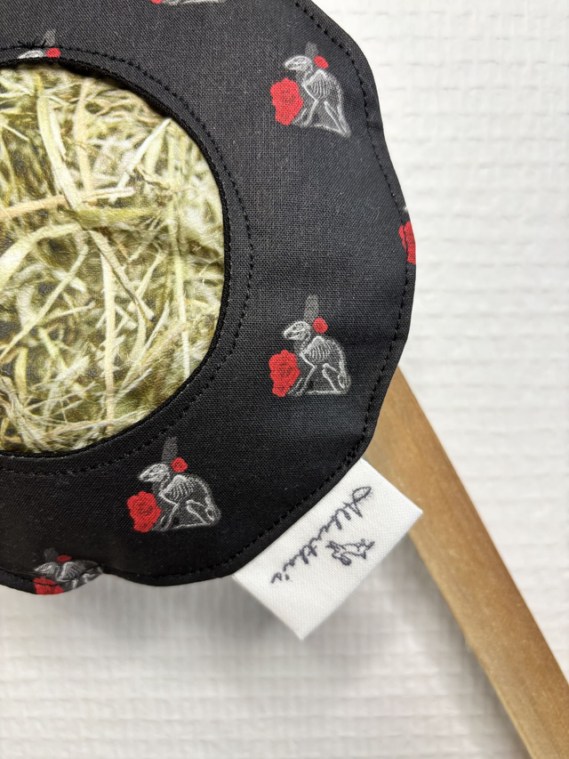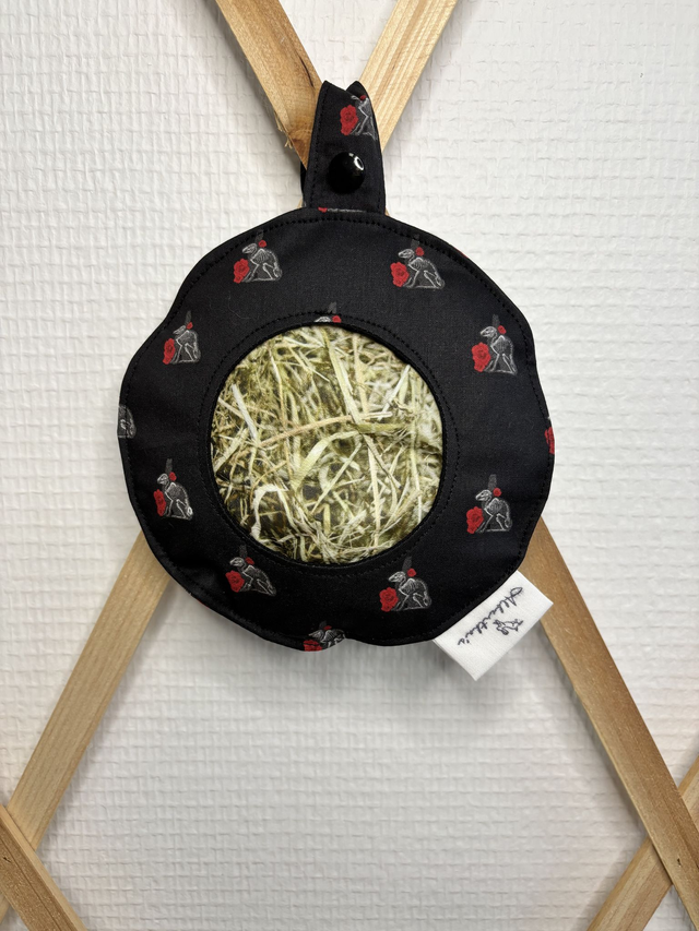 Grâce à son ouverture centrale de 7 cm, il peut aussi devenir un jouet de fouille : il suffit d’y glisser quelques friandises entre les brins de foin pour stimuler votre compagnon et l’occuper de manière naturelle.