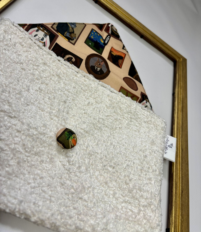 Fait main avec soin, dans des tissus exclusifs Albertha’s dessinés par mes soins, cette pochette associe coton et bouclette velours épais, pour un rendu à la fois doux, élégant et résistant. Elle se ferme facilement et accompagne les sorties en toute simplicité.